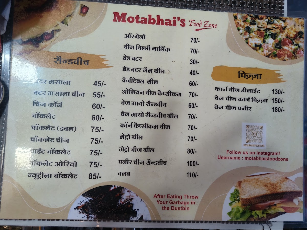 Welcome to Motabhai Food Zone, your new go-to spot for delectable and pocket-friendly snacks in Durg, Chhattisgarh. Located conveniently on Station Road, opposite Gayatri Mandir, this vibrant eatery is drawing food enthusiasts with its extensive and diverse menu.
